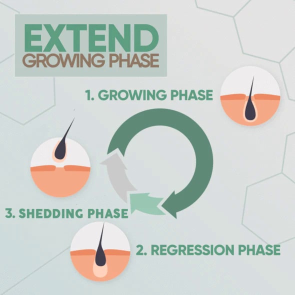 Powerful ginger root extract increases blood flow to hair follicles and stimulates follicles from the resting phase to the growing phase.