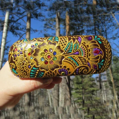 - Glasses holder for women. Glasses case hard with hand-painted.