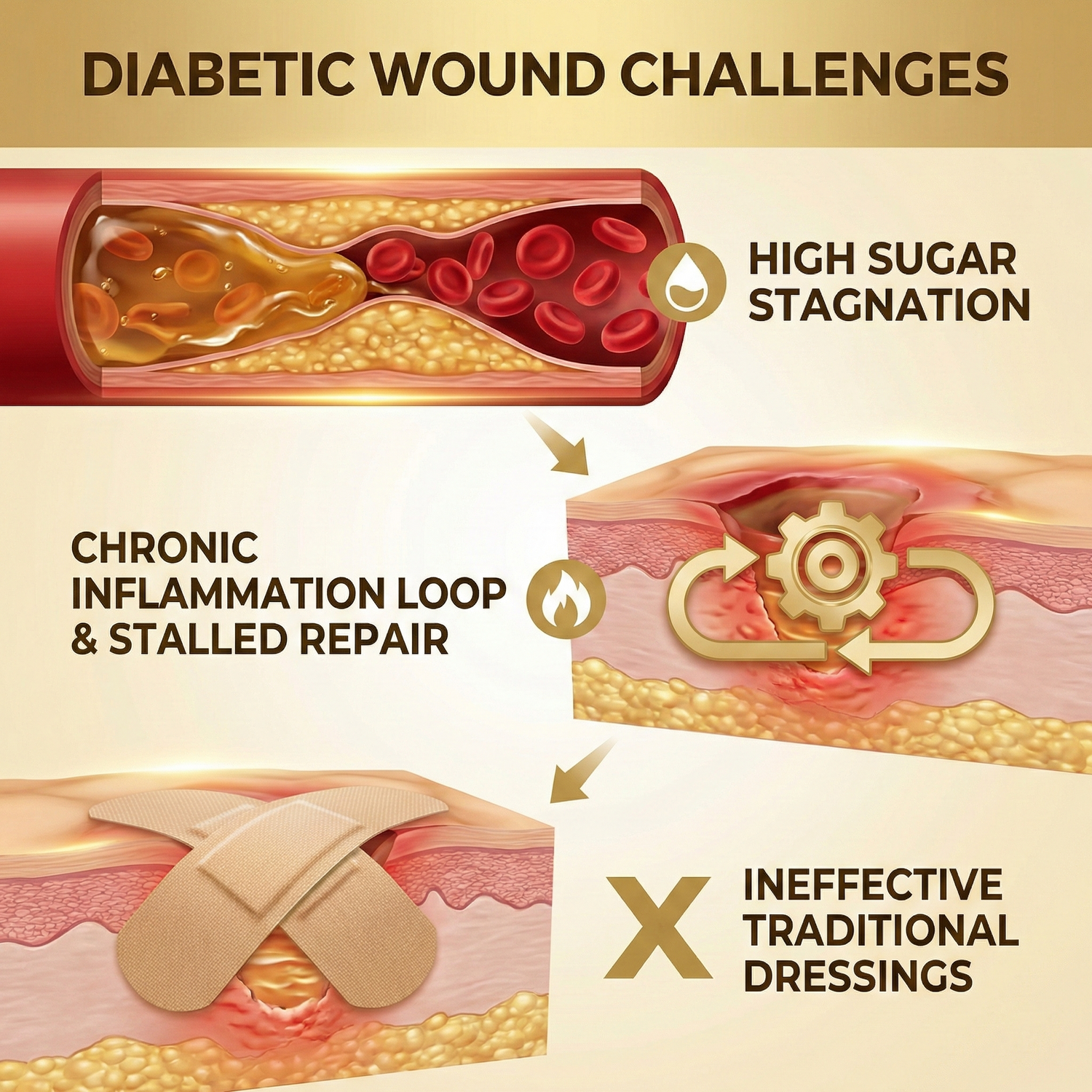 Your wound is stuck. The high-sugar environment keeps it locked in inflammation, preventing new tissue growth. It’s like an engine that refuses to start.