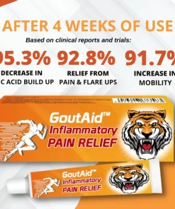 GoutAid™ Inflammatory Pain Cream’s advanced formula, infused with natural herbs, helps dissolve uric acid crystals and alleviate the pain and recurrence of gout. Its natural anti-inflammatory properties get to work right away to relieve the inflammation which can often cause other symptoms like joint stiffness, swelling, redness, heat, and sweating.