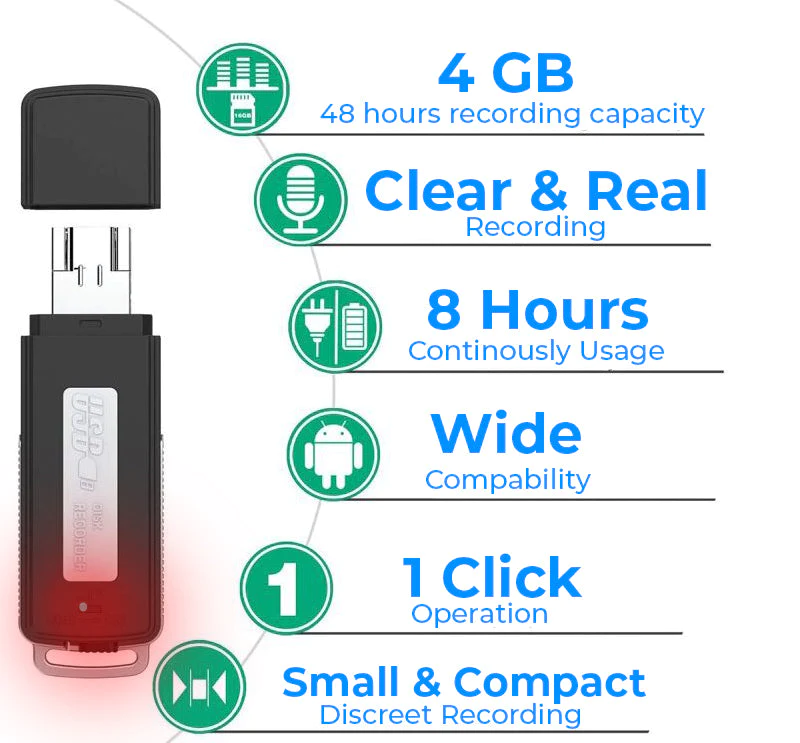 This is the powerful device to protect your children from bullying! Introducing the Guardian 1ClickON Secret USB Voice Recorder. It is the best device that provide parents with an effective way to protect their children when they are away. Small yet powerful recorder with built-in voice-activation sensor.