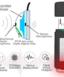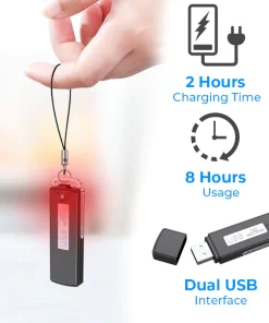The Guardian 1ClickON Secret USB Voice Recorder uses the most up-to-date PCM ten-core triple digital intelligent noise reduction technology to produce sound with a high-quality up to 512kbps. Omnidirectional stereo microphone is included, allowing for better, lower-pitched, and farther sound recording. The recorder’s durable zinc alloy housing provides longevity.