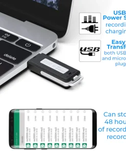 Voice recorder is compatible with Windows/Mac and Android devices(OTG). Just insert the mini recorder in your PC, MAC or Android device or your U disk and drag the files over to a PC, MAC and Mobile Phone. SUPER USER FRIENDLY! Easy extract recordings and can store up to 48 hours of recording.