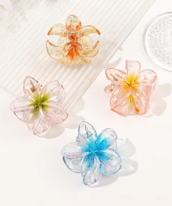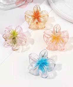4 Pcs Small Mixed Colors Hair Claw Clips for Women and Girls, Twinkle Claw Flower Shaped for Thin Hair