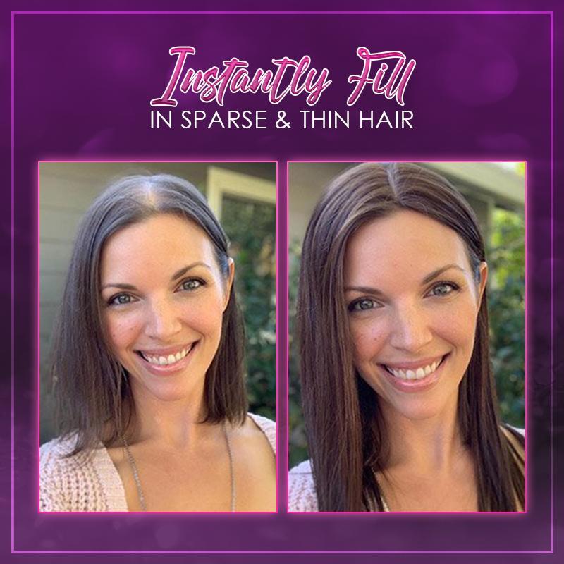 SUPER LIGHTWEIGHT WITH NATURAL PLANT INGREDIENTS AND NATURAL FIBERS AND NO THICK FEEL LIKE A WIG. IT HAS A STRONG FORMULA THAT MAINTAINS NATURALLY WITH YOUR EXAMINED HAIR, ADDING VOLUME AND A THICK VISUAL EFFECT.