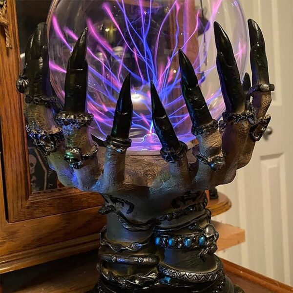 Halloween Witch Mysterious Crystal Ball is a tabletop decoration and acts as a plasma ball; Therefore, when you touch it, the lightning goes right to your fingertips.