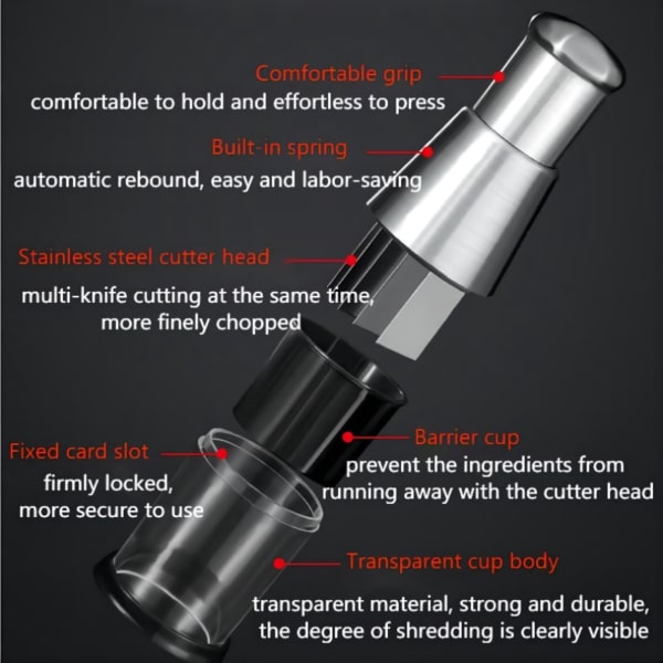 The strong stainless steel blades allow for fast processing of even the toughest products, and the comfortable soft-grip handle ensures a safe and easy slicing experience. With its compact design, this chopper is perfect for on the go so you can enjoy fresh, healthy snacks anytime, anywhere.