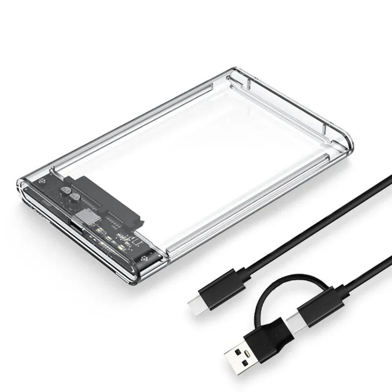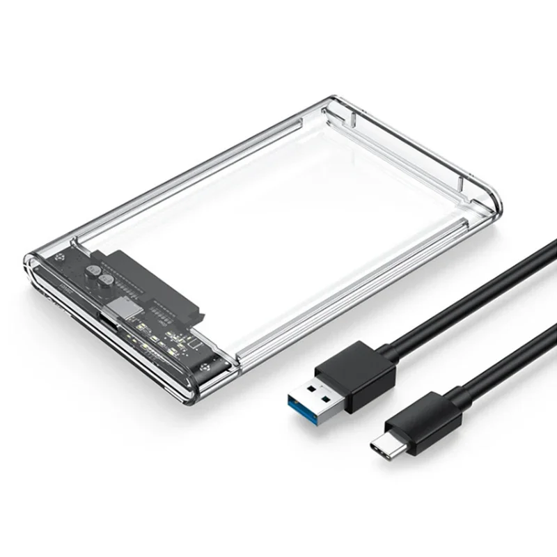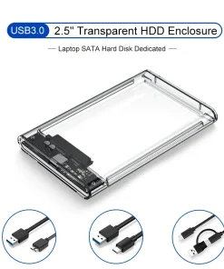 3.0/2.0 HDD Enclosure 2.5inch SATA SSD Hard Drive Case with 5Gbps Transfer Speed and Transparent Design Mobile External Housing
