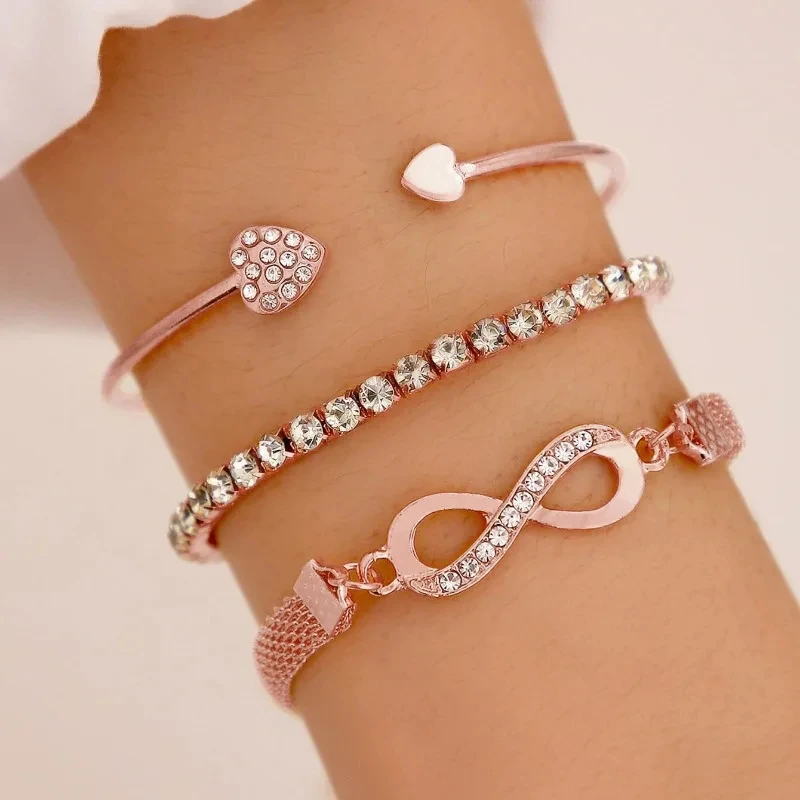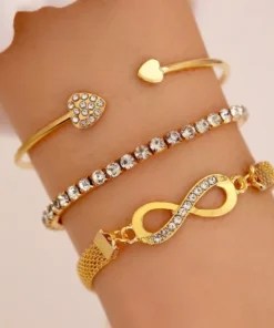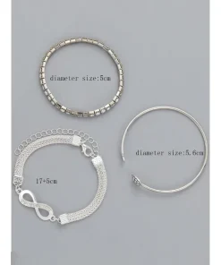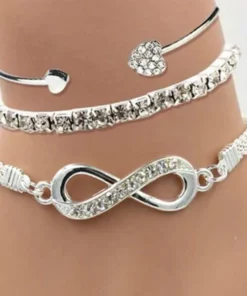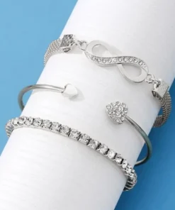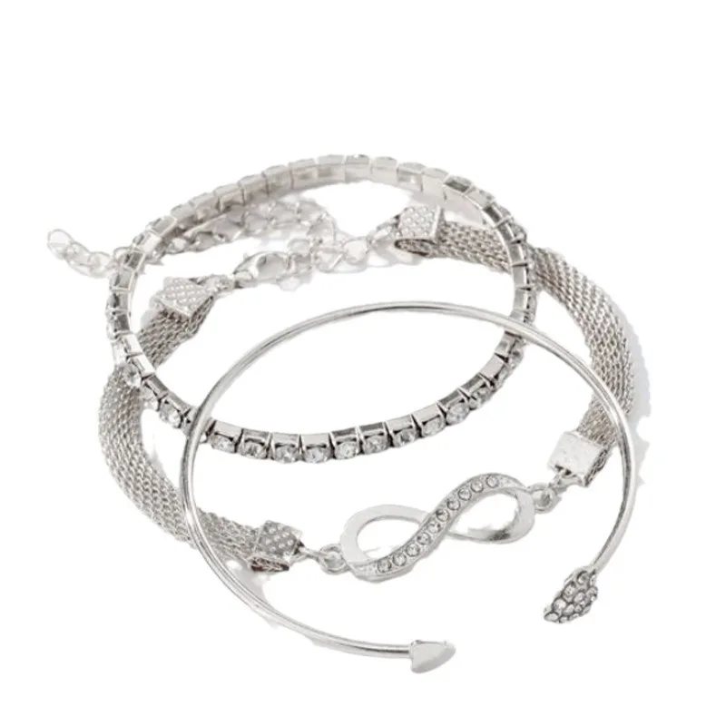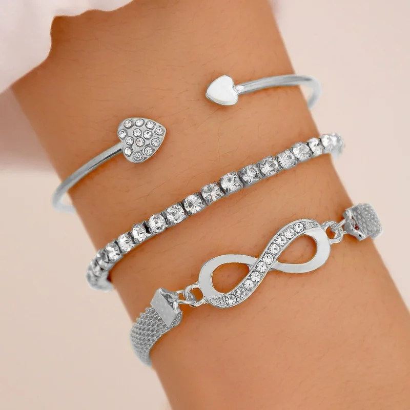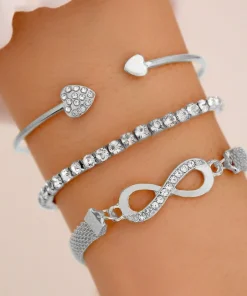 Vintage Set Silver Color Crystal Rhinestone Heart Bracelets for Women Fashion Geometric Adjustable Infinity Cuff Bangle Jewelry
