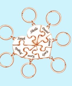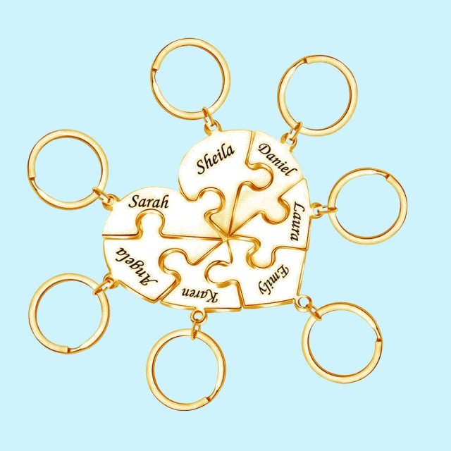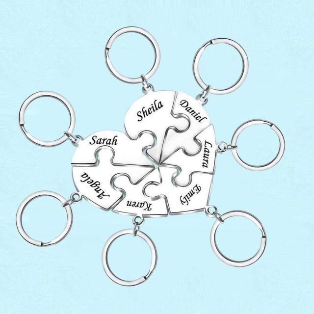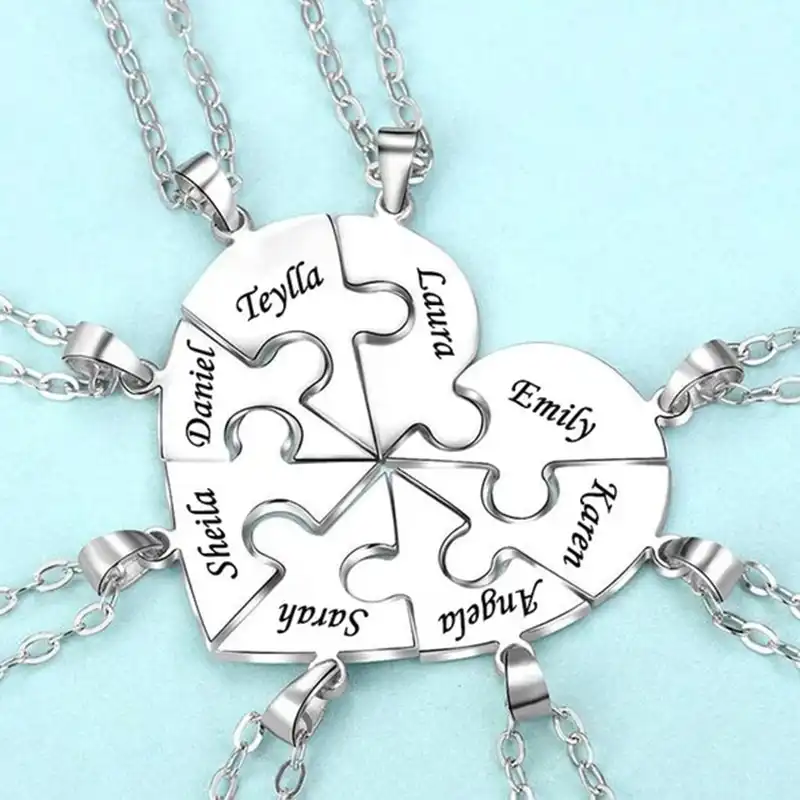 Our heart puzzle necklace can be worn by up to 8 friends or family members. You can engrave your name and the names of your friend or family member on the puzzle piece necklace.