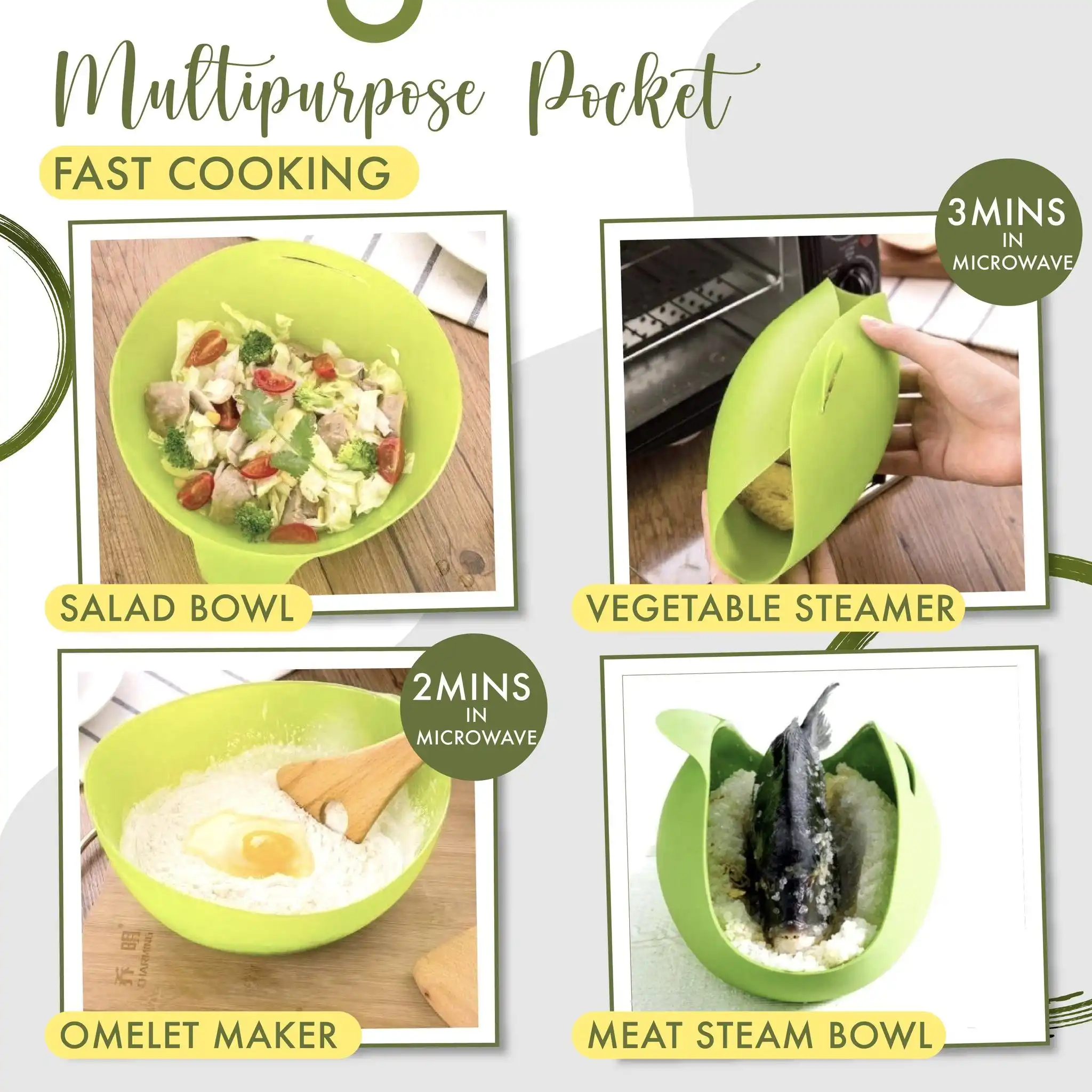 It can be used for steaming, roasting and cooking in the oven and microwave. Semi-closed chamber design allows air to circulate for the BEST and FAST cooking results. Collapsible – You can easily wrap it up for convenient storage!