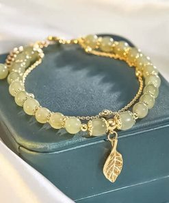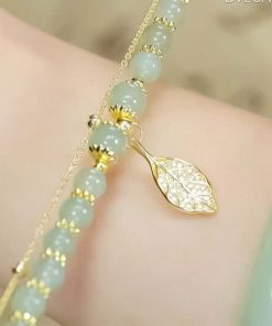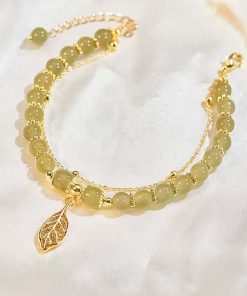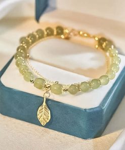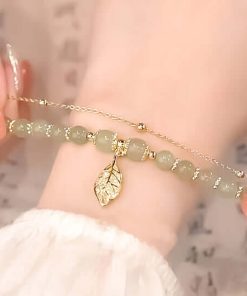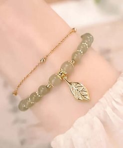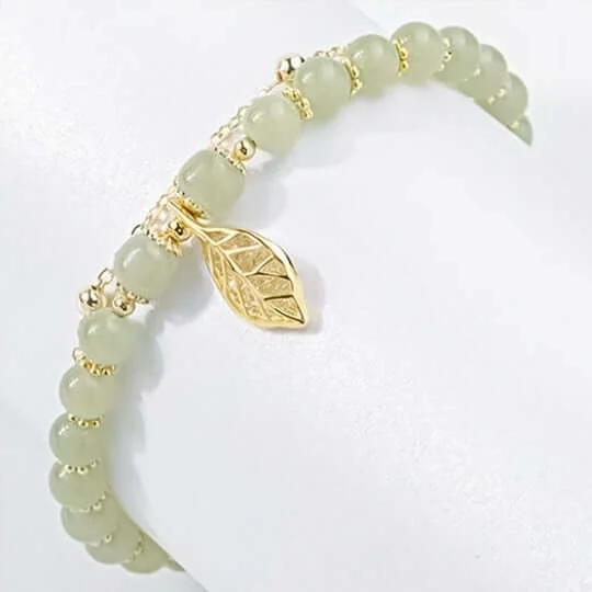 - PACKAGE INCLUDED: 1 × Hetian Jade Gold Leaf Bracelet