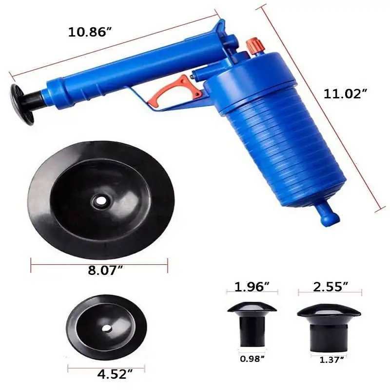 Pull the lever about 15 to 25 times and repeat the same process until the blockage is cleared. With our High-Pressure Drain Cleaner you will no longer be dealing with toxic chemicals that can corrode your pipes or endanger your home structure. Just pump the drain gun and pull the trigger, the clog is instantly gone. It is completely safe and environmentally friendly. Drain blaster include a complete set of attachments that you can use to clear any drains in the home. It can last for years and save you hundreds of dollars. You may never have to call a plumber again.
