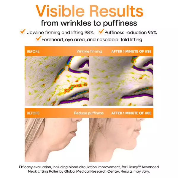 Liascy™ Advanced Neck Lifting Roller combines advanced serum technology with an innovative roller design to target the neck, jawline, and other delicate areas affected by aging and lifestyle habits. The potent ingredients in the formula work in synergy with the precision roller, providing immediate lifting and long-lasting firming results.