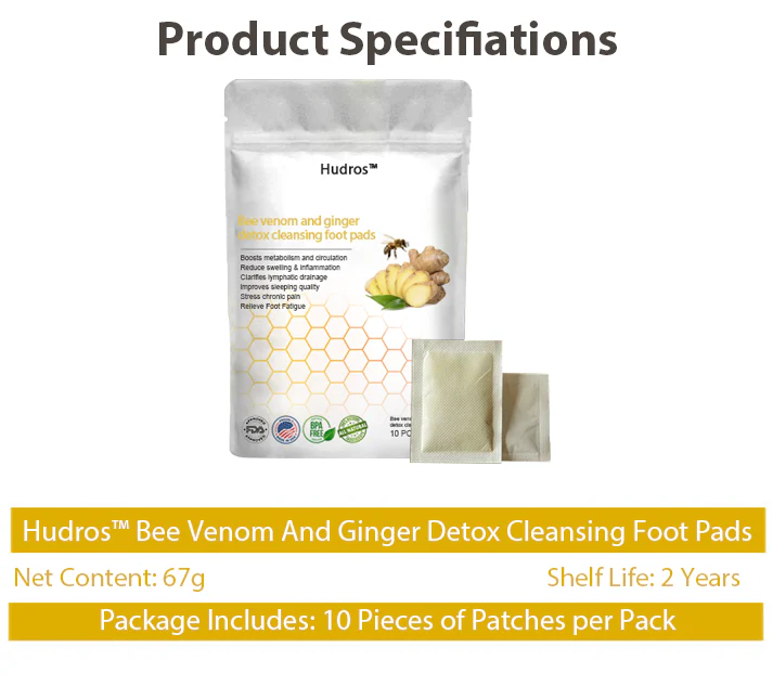 - Package: 10 pcs Hudro™ Bee Venom And Ginger Detox Cleasing Foot Pads