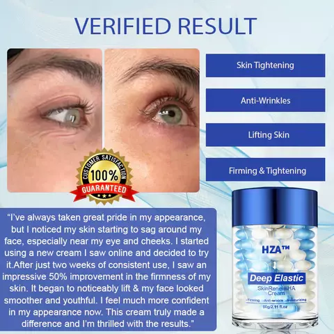 At HZA™, we are dedicated to delivering advanced skincare solutions that enhance your natural beauty. Our Deep Elastic SkinRenew HA Cream is designed to visibly firm and tighten your skin, addressing wrinkles, sagging, and loss of elasticity. With regular use, it helps rejuvenate your skin, improve texture, and restore a youthful, glowing complexion.
