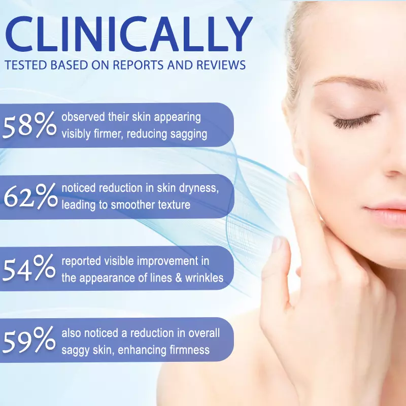 - 58% of users reported visibly firmer skin, with reduced sagging.