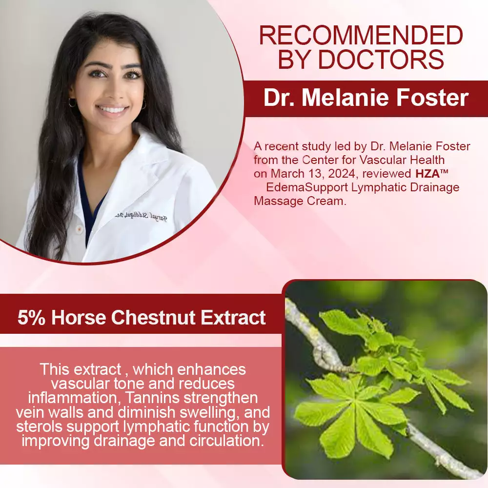 A study led by Dr. Melanie Foster, from the Center for Vascular Health, reviewed HZA™ EdemaSupport Lymphatic Drainage Massage Cream in March 2024. Dr. Foster’s findings were impressive: