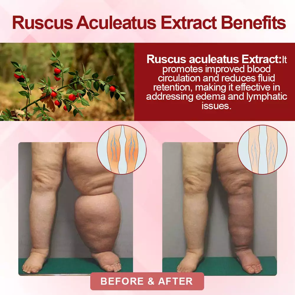 - Ruscus aculeatus Extract: Relieves leg swelling, promotes circulation, and reduces inflammation.