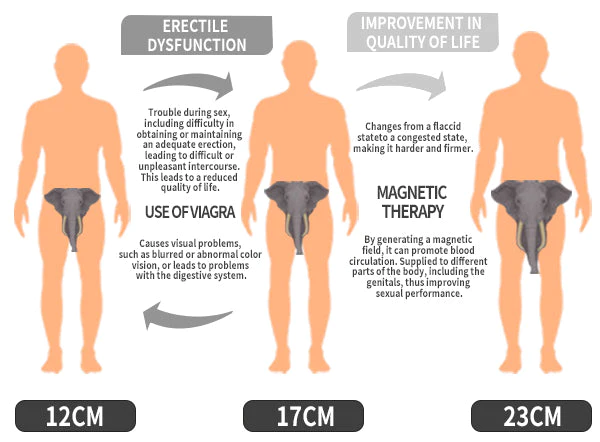 The IC BIO™ ED Magnetic Energy Ring is a shift from a state of minimum perfusion relaxation to a state of congestion through magnetic therapy and the vascular system. It is mediated by a multifaceted continuum of neural and vascular components, plus hormonal and psychological factors. Through complex neural pathways consisting of somatosensory afferents to autonomic (cavernous) nerves, and supraspinal structures including the medial preoptic area of the hypothalamus and the paraventricular nucleus, magnetic therapy arousal stimulates the release of neurotransmitters that initiate erection.