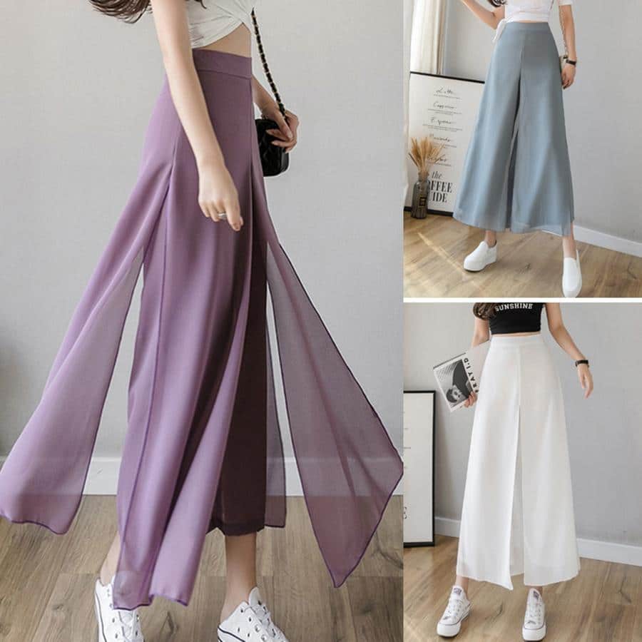 Ice Silk Chiffon Wide-Leg Pants