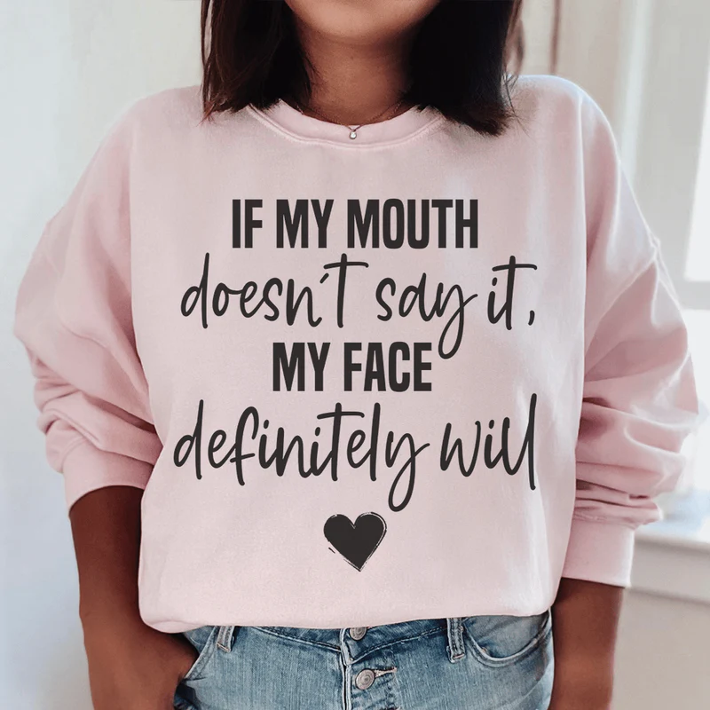If My Mouth Doesn’t Say It My Face Definitely Will Sweatshirt has the following product features: