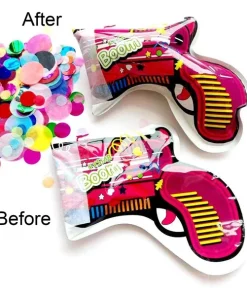 When it’s all air inside, depress the air inside the Toy gun, it will explode and the confetti flutters like a butterfly in 20 ft. air, bringing unforgettable memories with screams and cheers. A safer and more environmentally friendly alternative to fireworks. Easy to carry, small size and light weight. No hazards or harmful substances, perfect for indoor or outdoor use.
