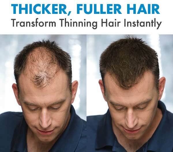 THICKER, FULLER HAIR — Hair Building Fibers instantly give you the look of thicker, fuller hair. Made of natural, colored Keratin Fibers that blend perfectly into existing hair. Hair Fibers resist wind, rain and sweat but remove easily with shampoo.