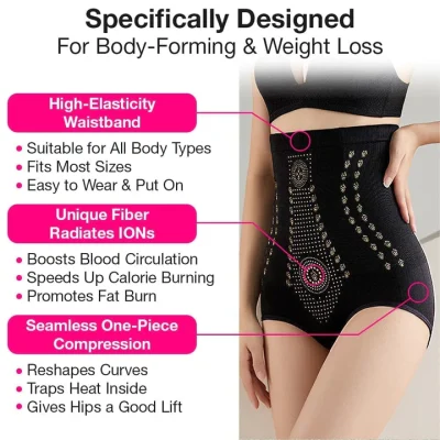 With the help of both the IONs radiated by the Unique Fiber and the Seamless One-Piece Compression body-forming features of our shaper, you’ll be able to lose weight, burn fat, and shape your hips. And that is possible because of the concentration of IONs around your waist that targets belly fat and the shaping properties of the compression fit in our shaper.