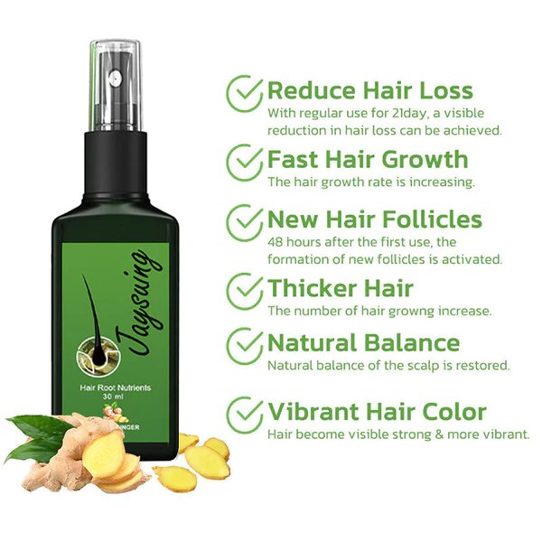 Jaysuing Nourishing Ginger Spray is packed with vitamins, antioxidants and nutrients that effectively promote stronger and faster hair growth for both men and women.