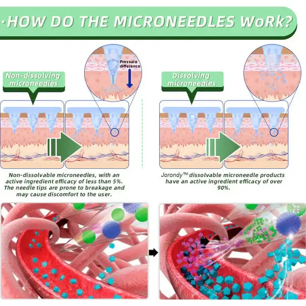 The Jorondy™ SMGT-GLP-1 Nano Microneedle Patch offers a long-lasting. slow release of the medication. ensuring a stable effect over 24 hours without causing any discomfort. With the same dosage and price. it can maintain up to 20 times longer-lasting effects (similar to the difference between an IV drip and a single injection).