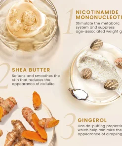 Studies have demonstrated that boosting NAD+ synthesis in the body beneficial way to effectively slow down and reverse skin aging and other adverse effects of UV radiation on the skin. JUENIX Anti-Cellulite Pump-Serum contains an unprecedented purity level of 98% (other NMN product won’t disclose their purity levels) directly reaching and affecting the skin, giving it a more youthful look and feel.