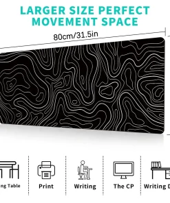 1Pcs Gaming Mouse Pad Large Keyboard Pad 31.5 x 11.8in Topographic Mouse Pad Black and White Mouse Pad for Keyboard with Anti-Sl