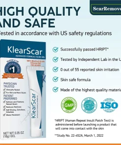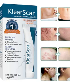 KlearScar™ Advanced Scar Removal Gel – Made with allantoin and advanced scar gel, our formula helps promote skin health, firmness, and elasticity to reduce the appearance of most types of scars, including surgical scars, burn scars, hypertrophic scars, and keloids.