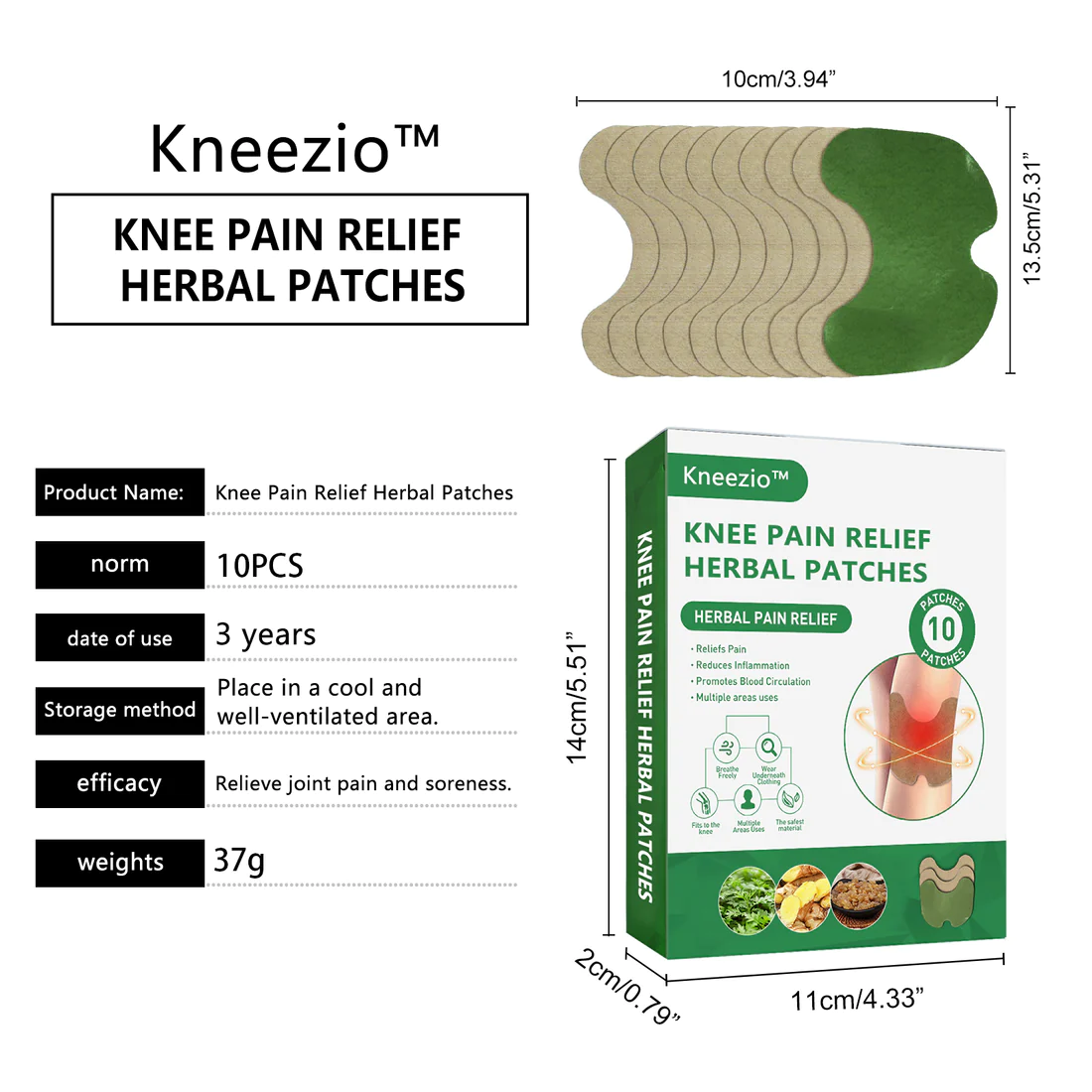 - Package: 1 x Kneezio™ Knee Pain Relief Herbal Patches
