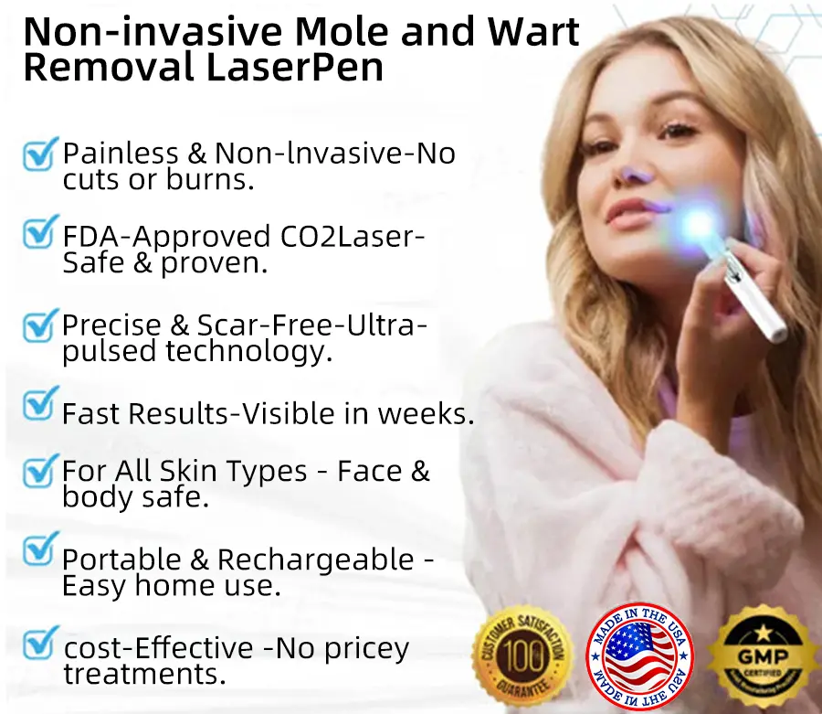 Say goodbye to moles, warts, dark spots and skin blemishes with the Kidsneedยฎ Non-Invasive Mole and Wart Removal Laser Pen Promax. Designed for easy use at home, this compact, lightweight device delivers professional-quality results in minutes. See visible skin improvements in just 2 weeks!