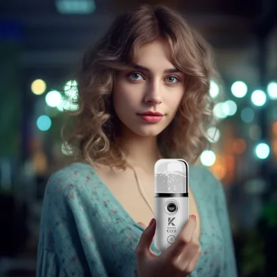 - Turn on the Nano Sprayer and apply the mist to your face.