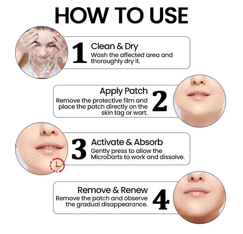 3️⃣ No Pain, No Scars – In 7-14 days, the tag falls off, leaving behind smooth, clear skin