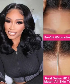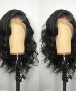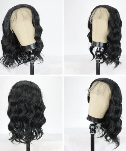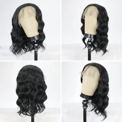 Black Short Body Wave Lace Front Wigs Glueless Natural Wave Synthetic Heat Resistant Fiber Hair Wig With Baby Hair 16 Inch