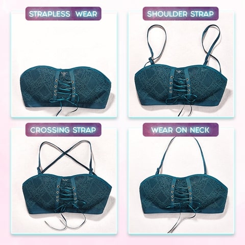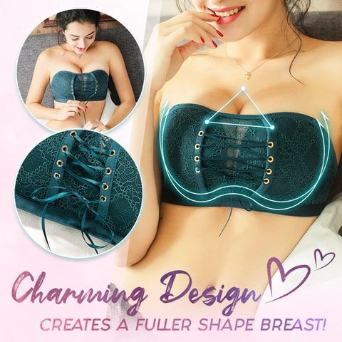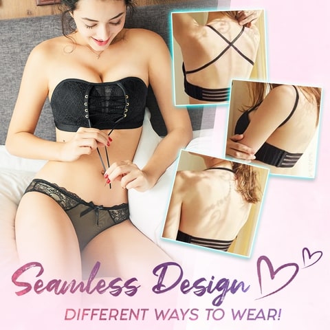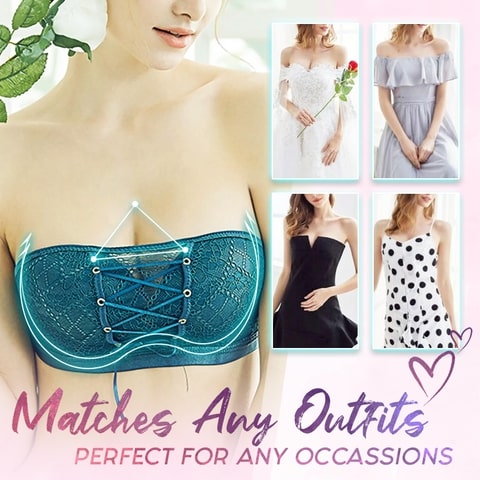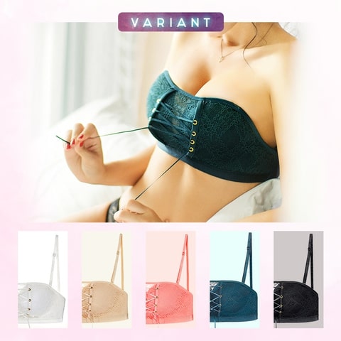 This sexy bandeau creates a busty, plump and charming deep v-shaped breast! The bra’s medium lace design pushes the chest up, emphasizing beauty and curve. You can adjust it by loosening or tightening to fit your shape.
