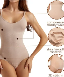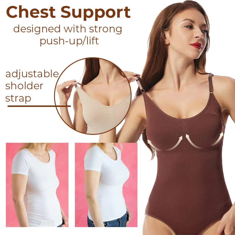 It has seamless sculpting material that can provide more compression to tighten your belly/waist and back to make your curve more sexy and slim. Perfectly flatten bulging areas with comfort. Giving you a smoother, slimmer hourglass curves immediately. It is easy to put on/off and comfortable to wear everyday! It has special advanced technology in chest area that avoid breast compression but it has lifting and support design. Fits for all cups with high elastic bust design. Lift chest for more attractive look and no more sagging.
