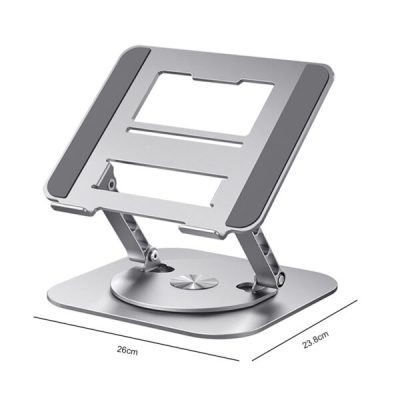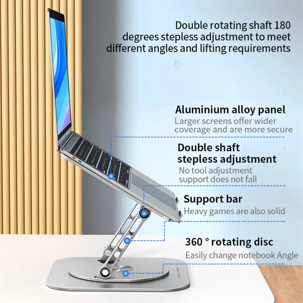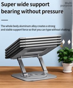 Laptop Stand Aluminum Alloy Swivel Bracket is fully adjustable in height and angle. You can freely raise the laptop screen height up or down for improved ergonomics and to reduce neck discomfort.