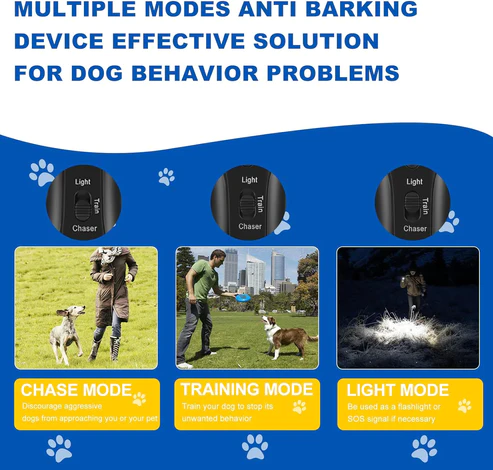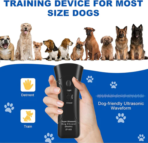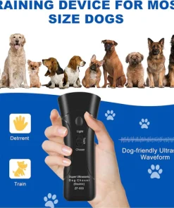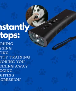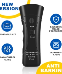 LASIONI™ Ultrasonic Bark Stopper – The dog training and bark control device uses two speakers that reach up to 33 ft to deter unfriendly dogs. And portable design makes the stop barking dog device suitable for indoor or outdoor. You can use the ultrasonic dog bark deterrent to train your dog or carry it around to drive away. High-frequency flashlights combined with ultrasound increase deterrence, especially at night or in low-light environments. 9V carbon battery (included).