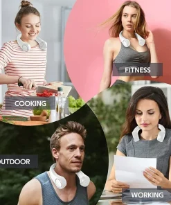 This neck-mounted fan has three-speed wind speed, fast speed, built-in large-capacity battery, low noise, and brings you a cool feeling in summer. Full 360-degree wind speeds up airflow and cools your head, keeping you cool for longer.