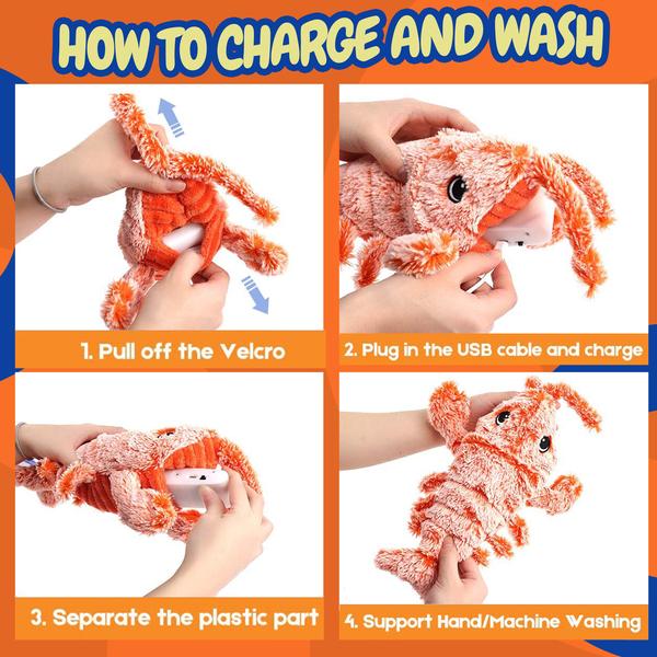 We bought this lobster because our kitten loves the flopping fish so much. I am impressed with the lobster because it’s battery life is so much longer than her fish’s battery life. Both of them have rechargeable batteries with a USB cable. The lobster can be used for at least 3 days with a single charge. At first, my kitten was a little bit hesitant about the lobster because it’s larger than her fish and it has a fuzzy texture like a stuffed animal, but after watching the lobster flipping it’s tail from a distance for a little while, she decided it looked like fun and she plays with it all the time now. This is a great toy for a kitten.