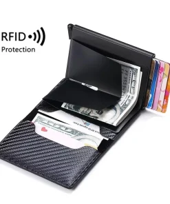 ID Credit Card Holder Men Wallet RFID Blocking Protected Aluminium Box Leather Wallets with Money Clip Designer Pasjeshouder
