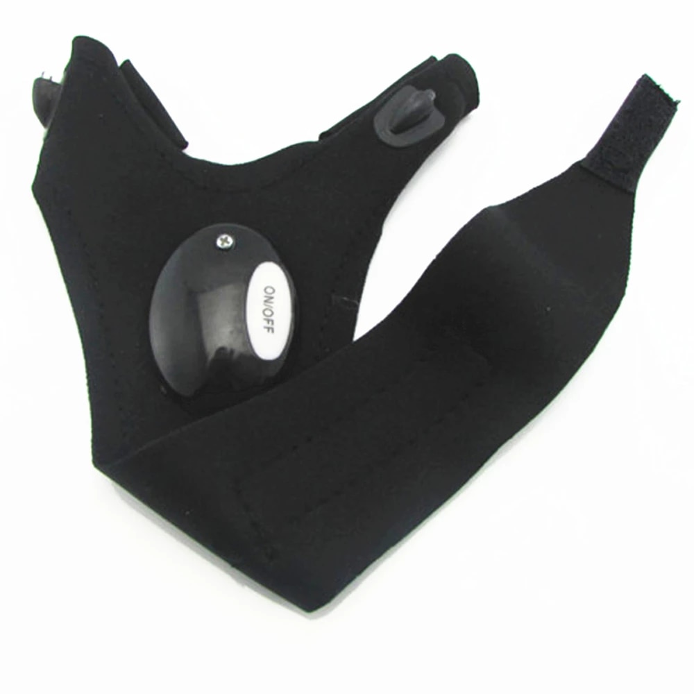 Glove or even a fingertip on 2 pin. Thin cloth and the board with switch and two LED lights. The brush attached Velcro around the arm. For normal male hand a little bit, but you can use. Shine bright. Two flat batteries.