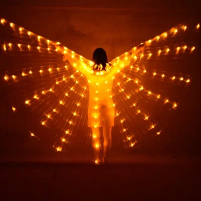 She’s wearing a unique and sparkly costume, isn’t she? However, it is difficult to get a gorgeous and different outfit as it is not easily available in the market and requires a lot of budget. But not with this LED Light Luminous Clothing. It gives you a bright look and attracts all the viewers to you. These shiny wings are harmless to the body and easy to wear.