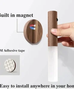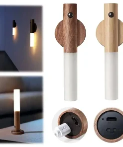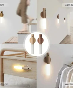 LED Wood USB Night Light Motion Sensor Magnetic Wall Lamp Cabinet Closet light Staircase Bedroom Table Lamp Bedside Lighting