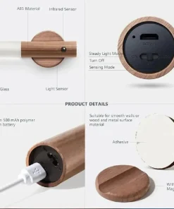 Suitable for living room, bedroom, children’s room, study, bathroom, aisle, wardrobe, wall decoration Dual intelligent sensing mechanism with built-in photosensitive sensor and infrared lens Instructions for use